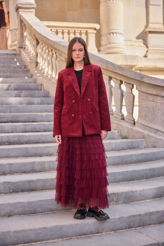 Blazer femme en velours côtelé bordeaux oversize - Félicia