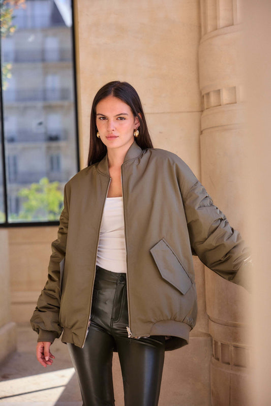 Bomber réversible kaki fausse fourrure léopard - Veste automne/hiver - Léane