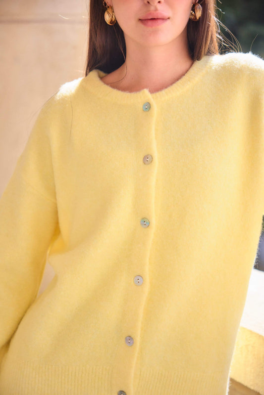 Cardigan jaune femme en laine- automne/hiver - YAËL