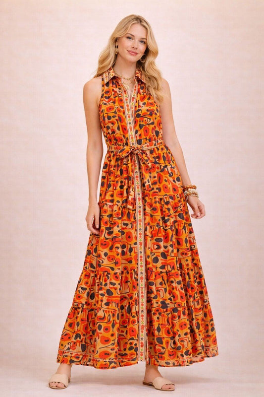 Robe chemise longue sans manches en coton imprimé - Taille unique