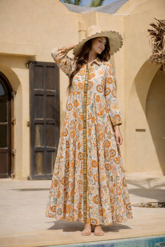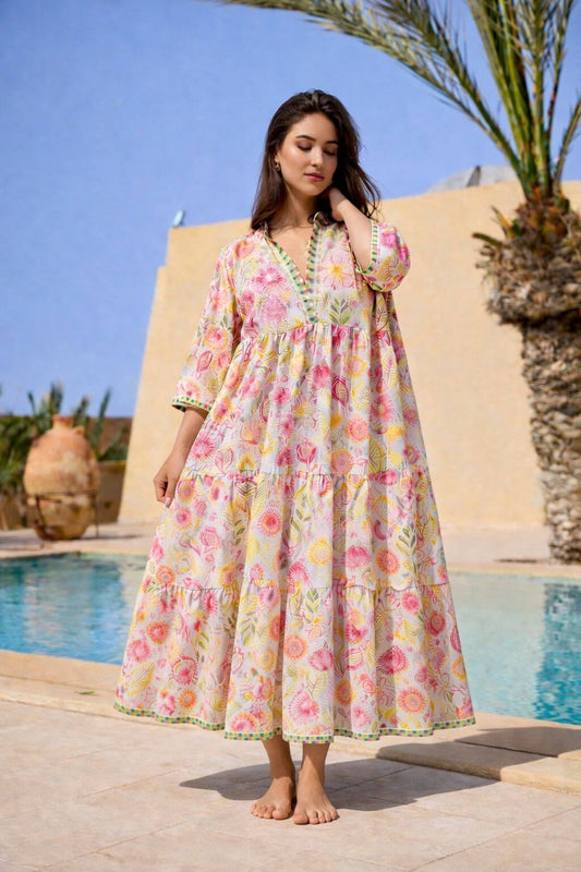 Robe longue bohème en coton dobby Indien- Taille unique