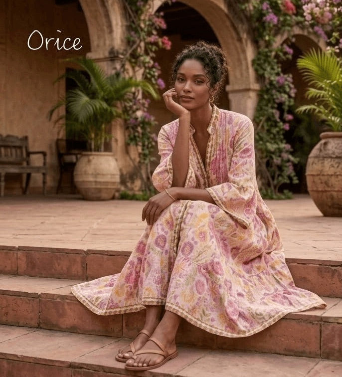 Robe longue à manches longues - Bohème chic en coton - Taille unique
