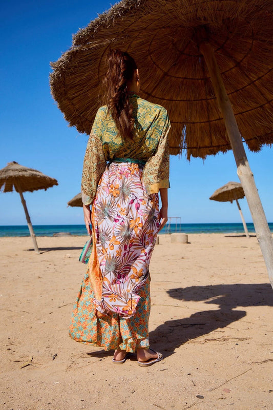 Kimono long patchwork en Soie - Style bohème - Taille unique