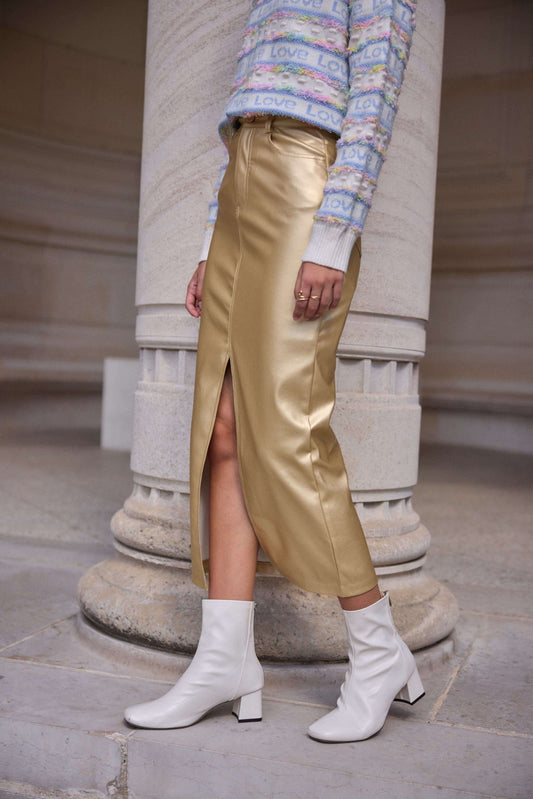 Jupe crayon gold longue femme en similicuir à fente devant - Jasmine