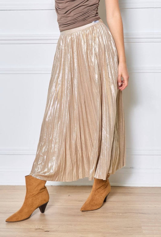 Maxi jupe femme en tissu lamé doré taille unique chic - Chelsy