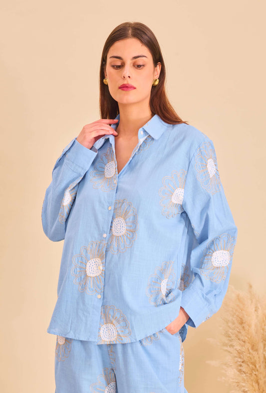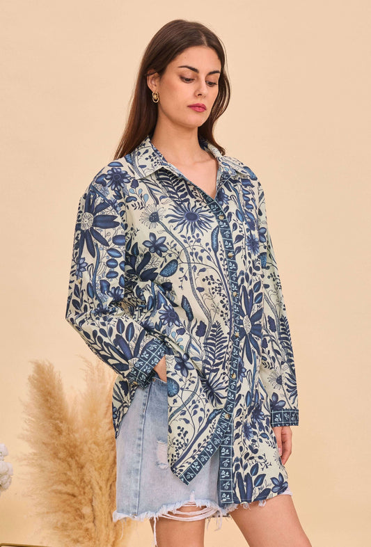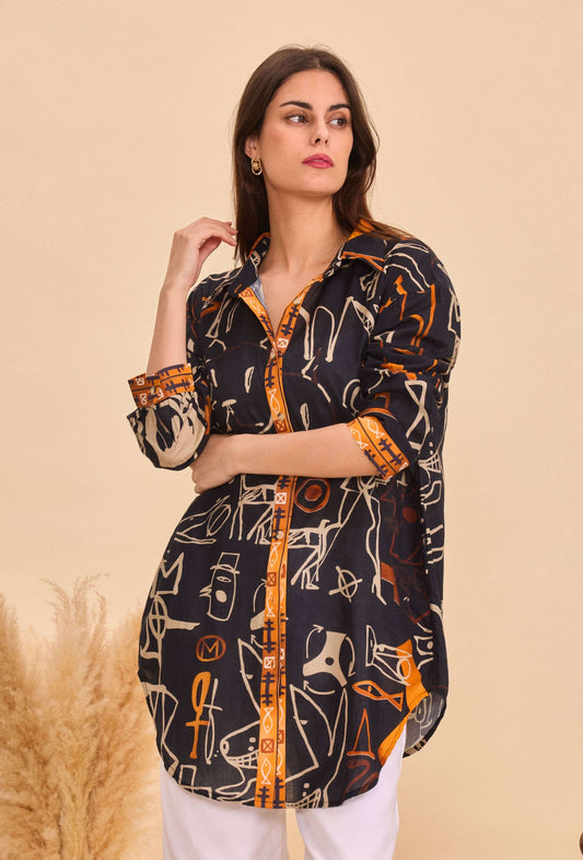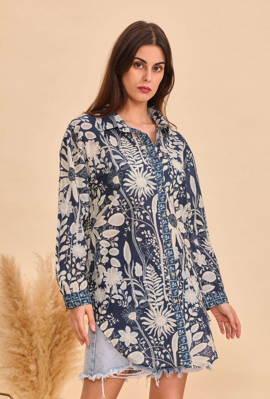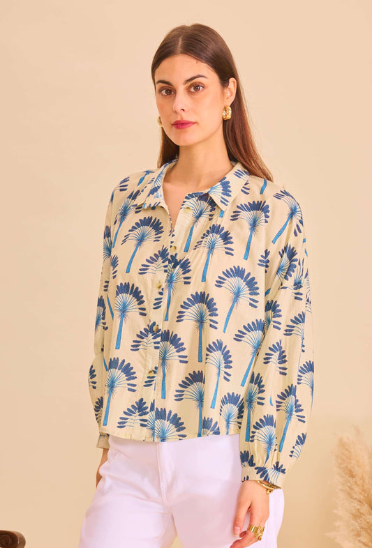 Chemise manches longue en coton imprimé marine - Orice Paris