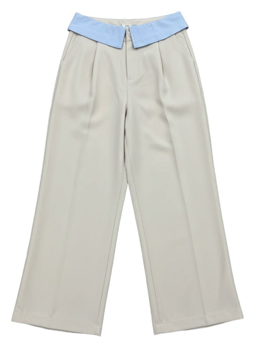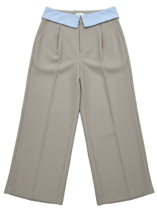 Pantalon large taille haute taupe clair - Louise