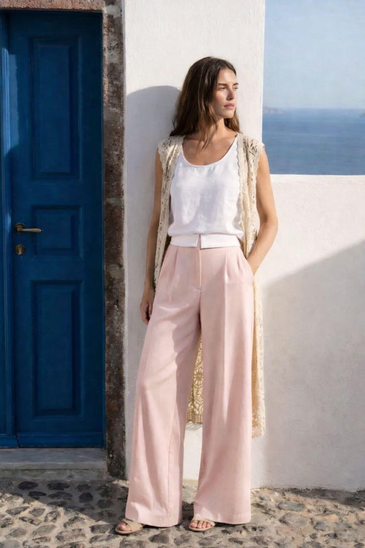 Pantalon large taille haute rose clair - Sarah