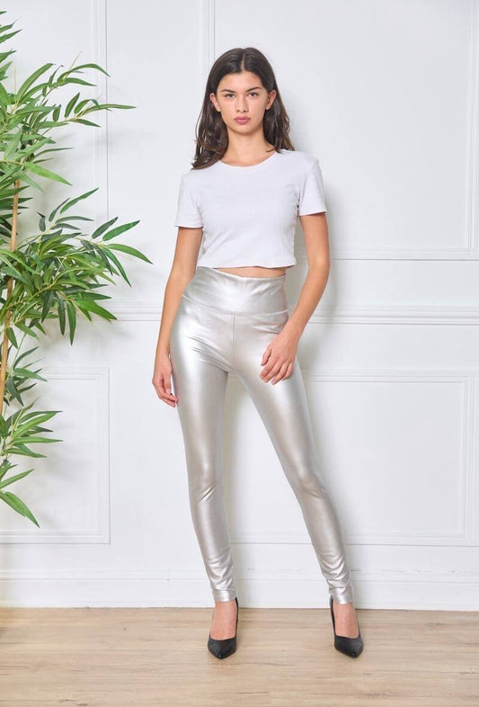 Legging femme taille haute en similicuir argent - Cholé