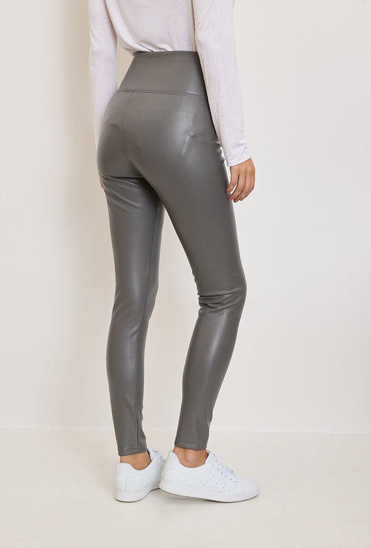 Legging femme en similicuir gris taille haute - Kaina
