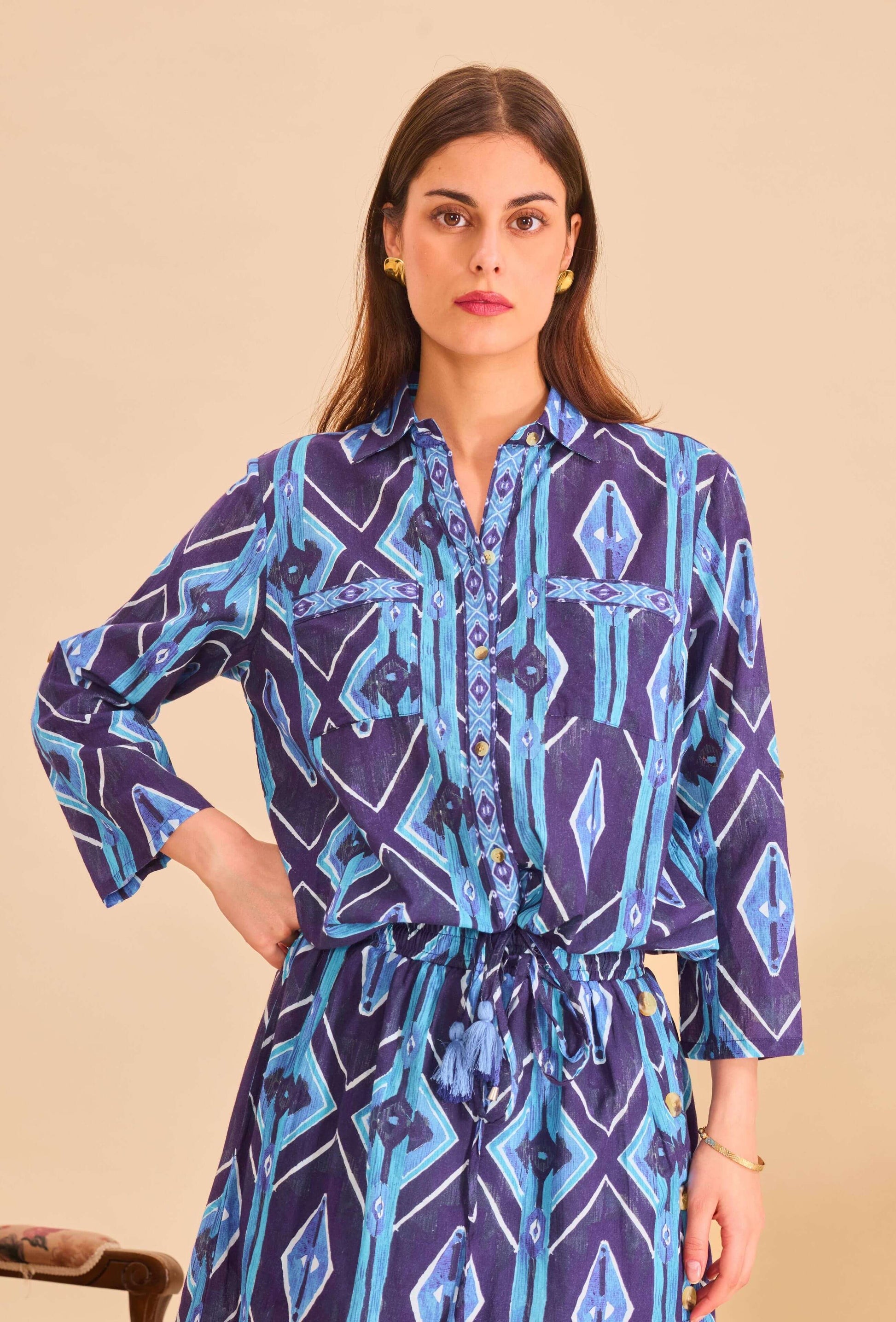Adoptez un style printanier avant-gardiste avec cette chemise batik, dotée d'une encolure chemise classique, de manches longues ainsi que d'un cordon de serrage dans le bas. Cette chemise est parfaite si vous cherchez un modèle unique.