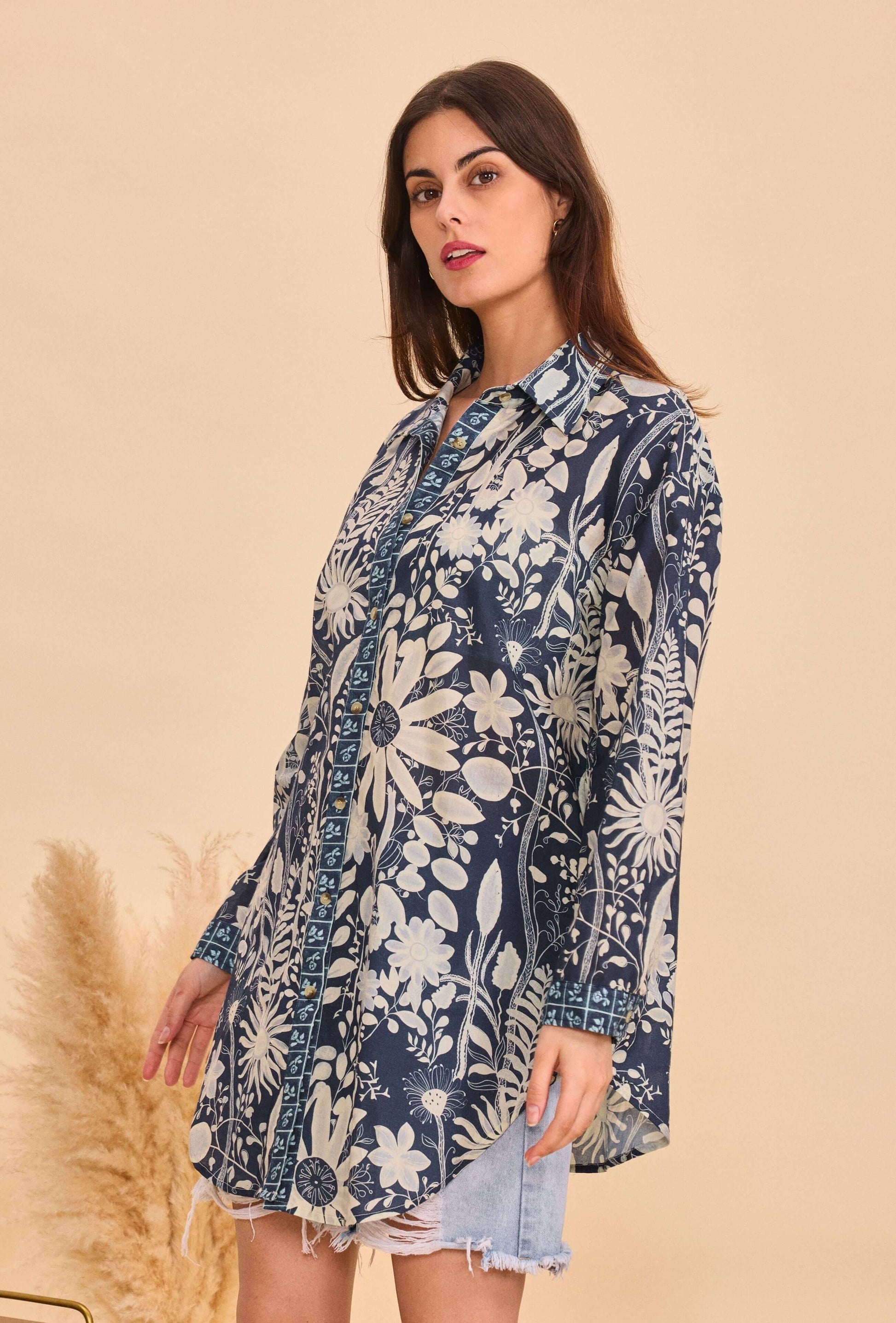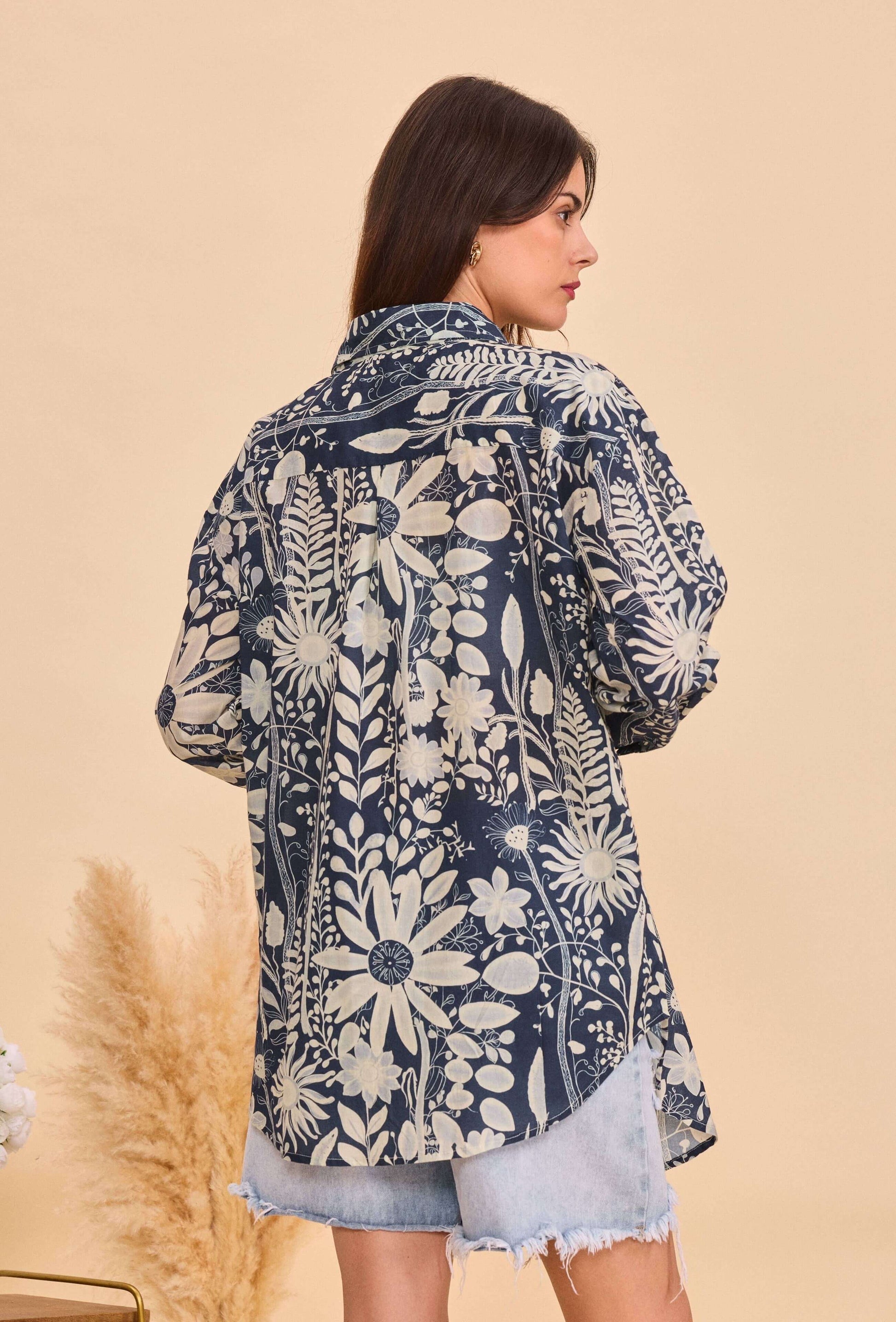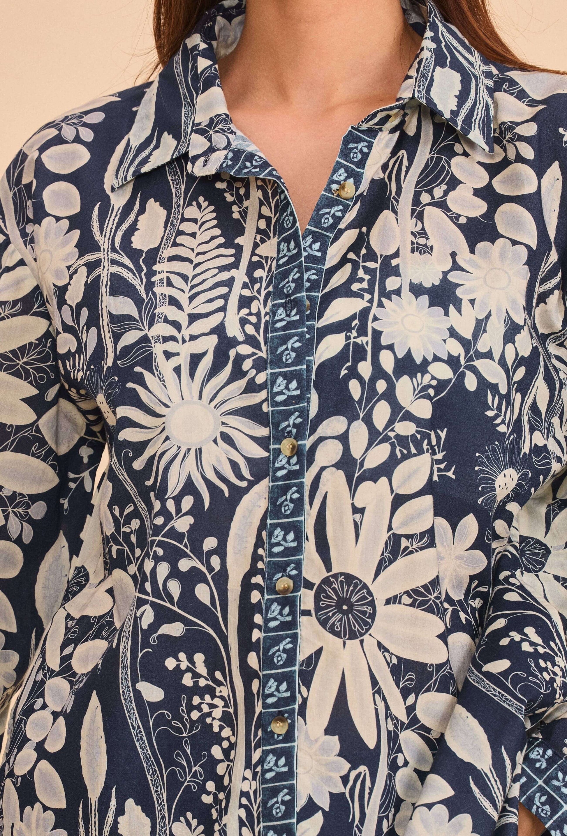 Chemise manches longue en coton imprimé marine - Orice Paris