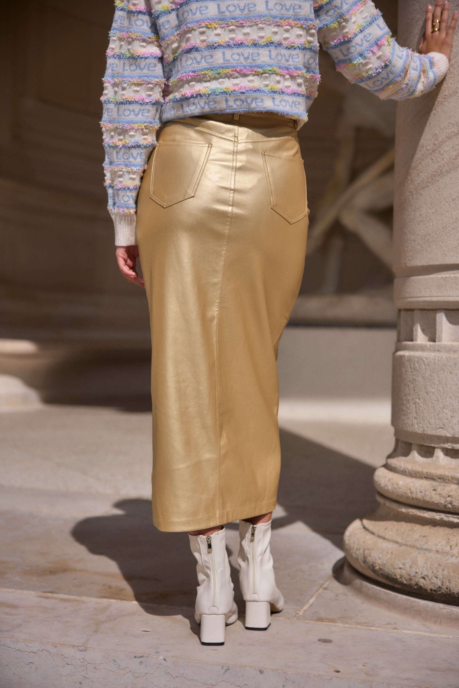 Jupe crayon gold longue femme en similicuir à fente devant - Jasmine